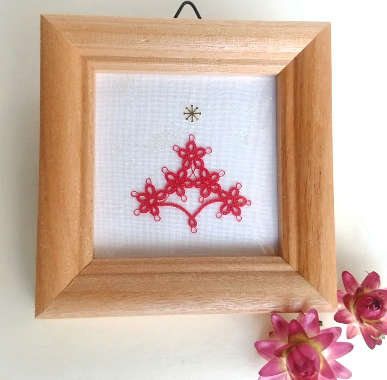 タティングレース・壁掛け・赤 インテリア クリスマスツリー 額縁 フレーム 雑貨 シンプル かわいい